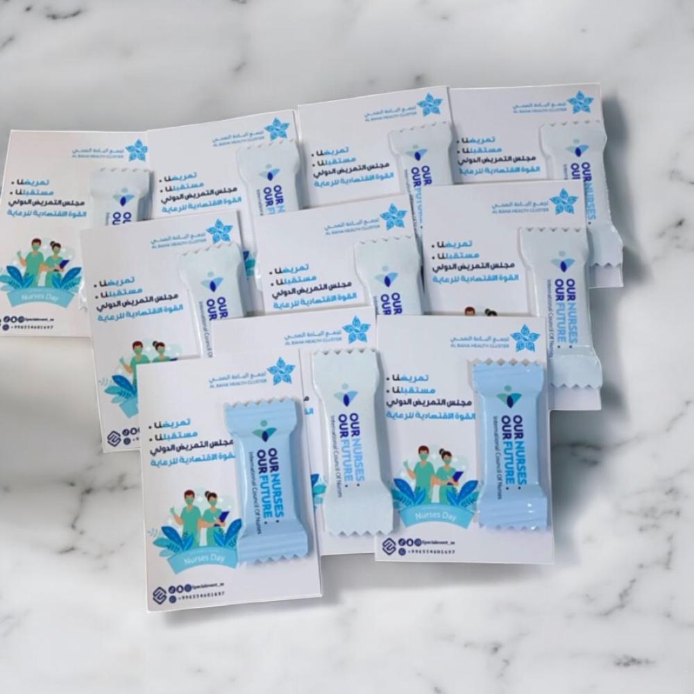 - كل قطعة مغلفة بورقة تصميم مخصص