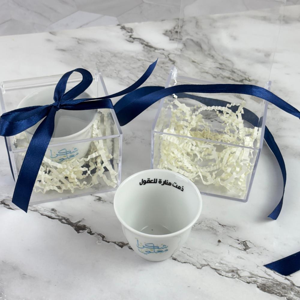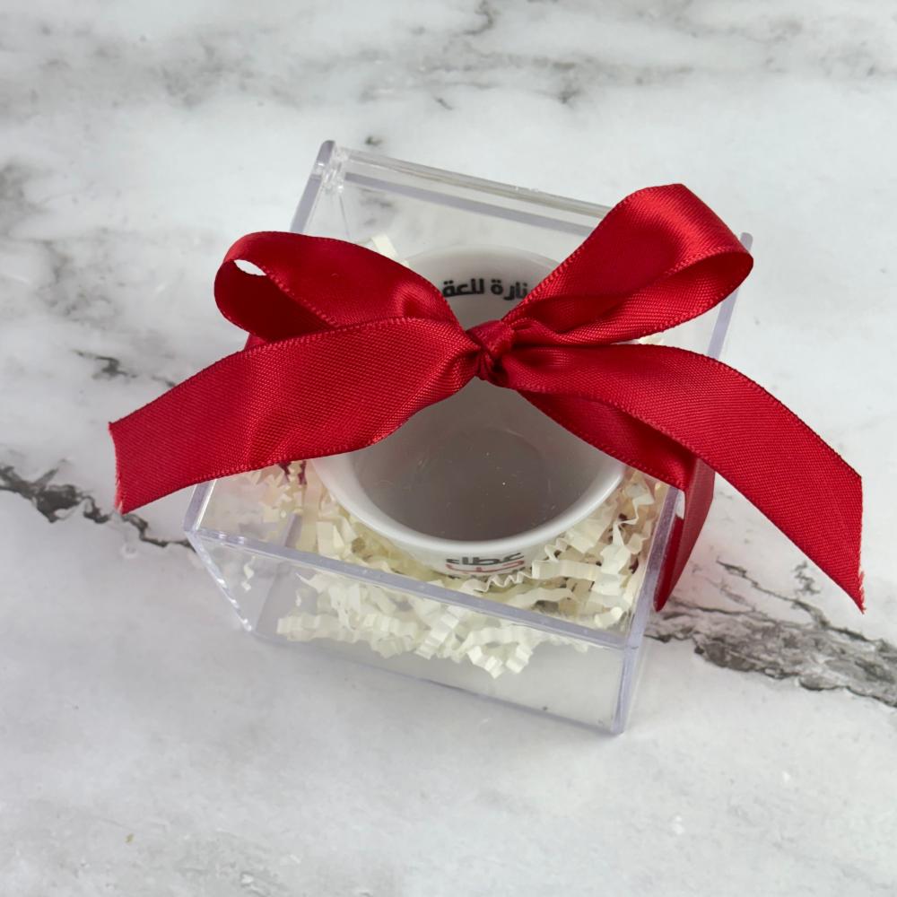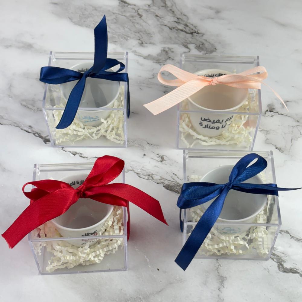 - كل بوكس يحتوي على فنجان قهوة واحد بتغليف أنيق مع حشوة ورقية وشريط ساتان.