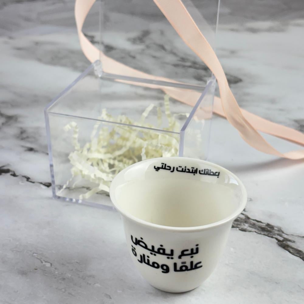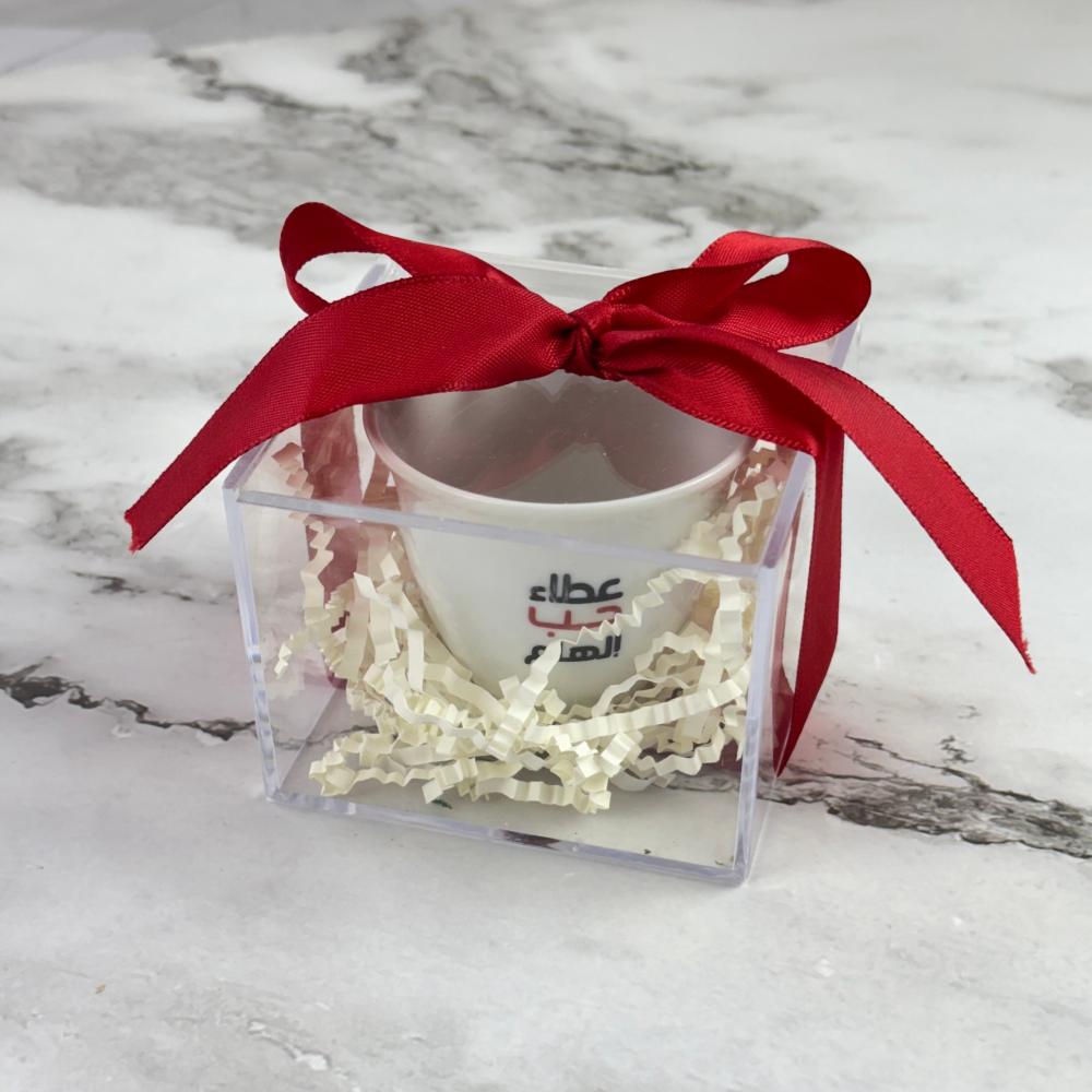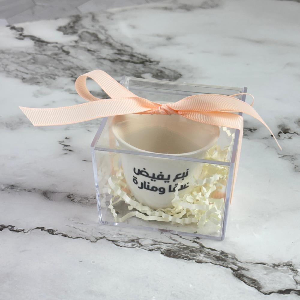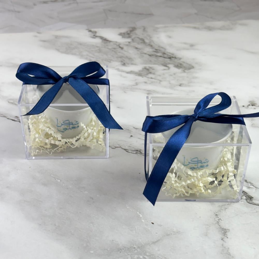 - كل بوكس يحتوي على فنجان قهوة واحد بتغليف أنيق مع حشوة ورقية وشريط ساتان.