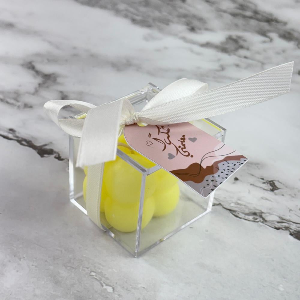 توزيعات يوم المعلم أنيقة ومميزة عبارة عن بوكس أكريلك شفاف ميني يحتوي على شمعة بابلز فواحة بلمسة عصرية تضيف أجواء دافئة للمكتب أو المنزل.