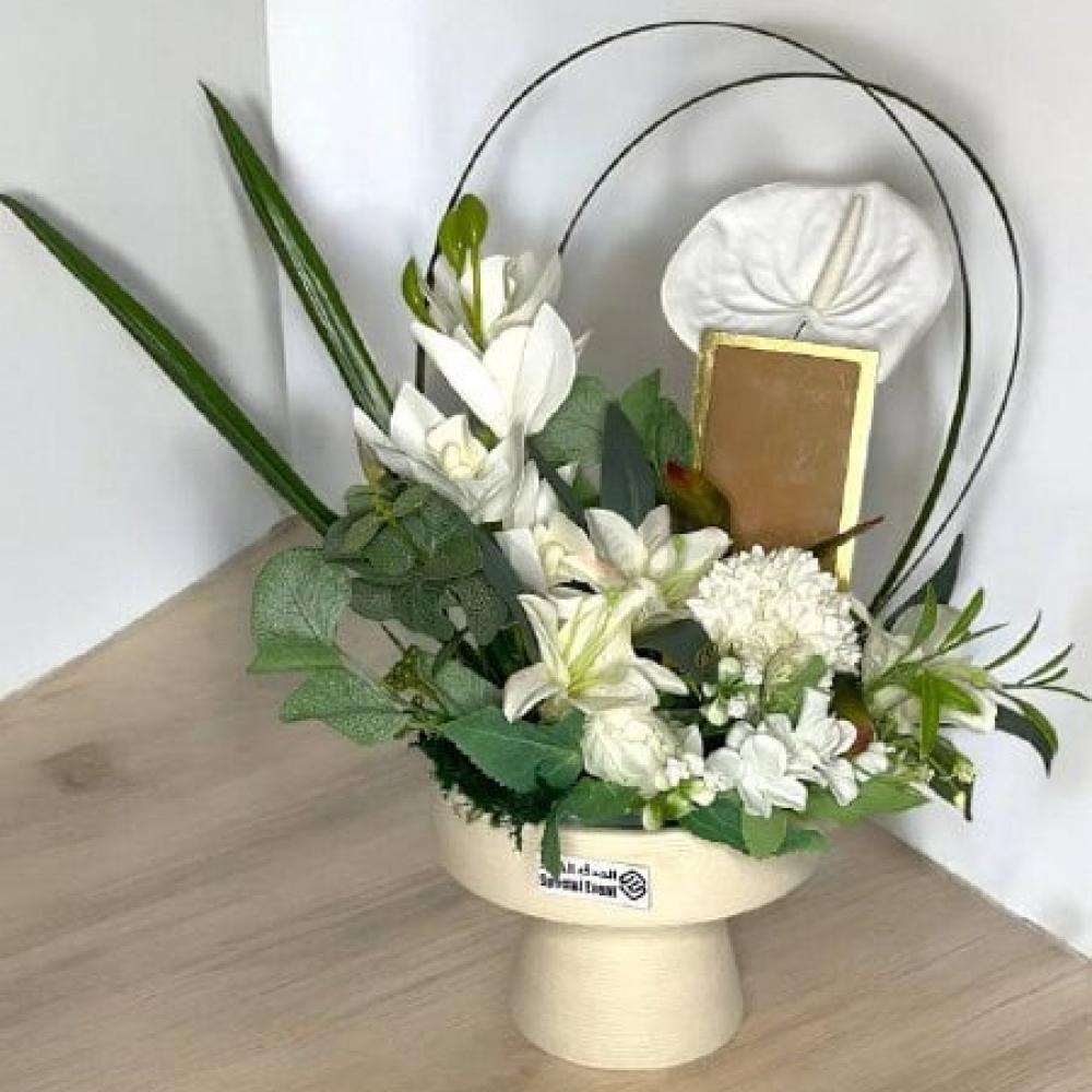 فازة حجريه منوعه بالزهور الصناعي وإضافة أكريلك لمبلغ مالي