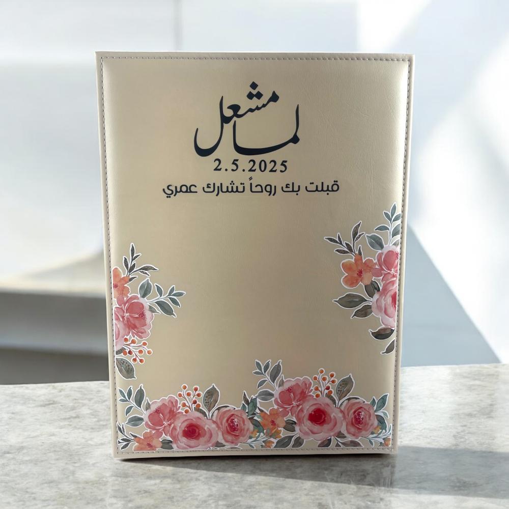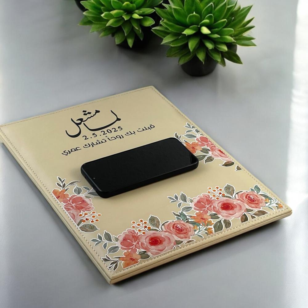 لوح جلدي فاخر بطباعة حرارية لعقد القران الإلكتروني – حسب الطلب