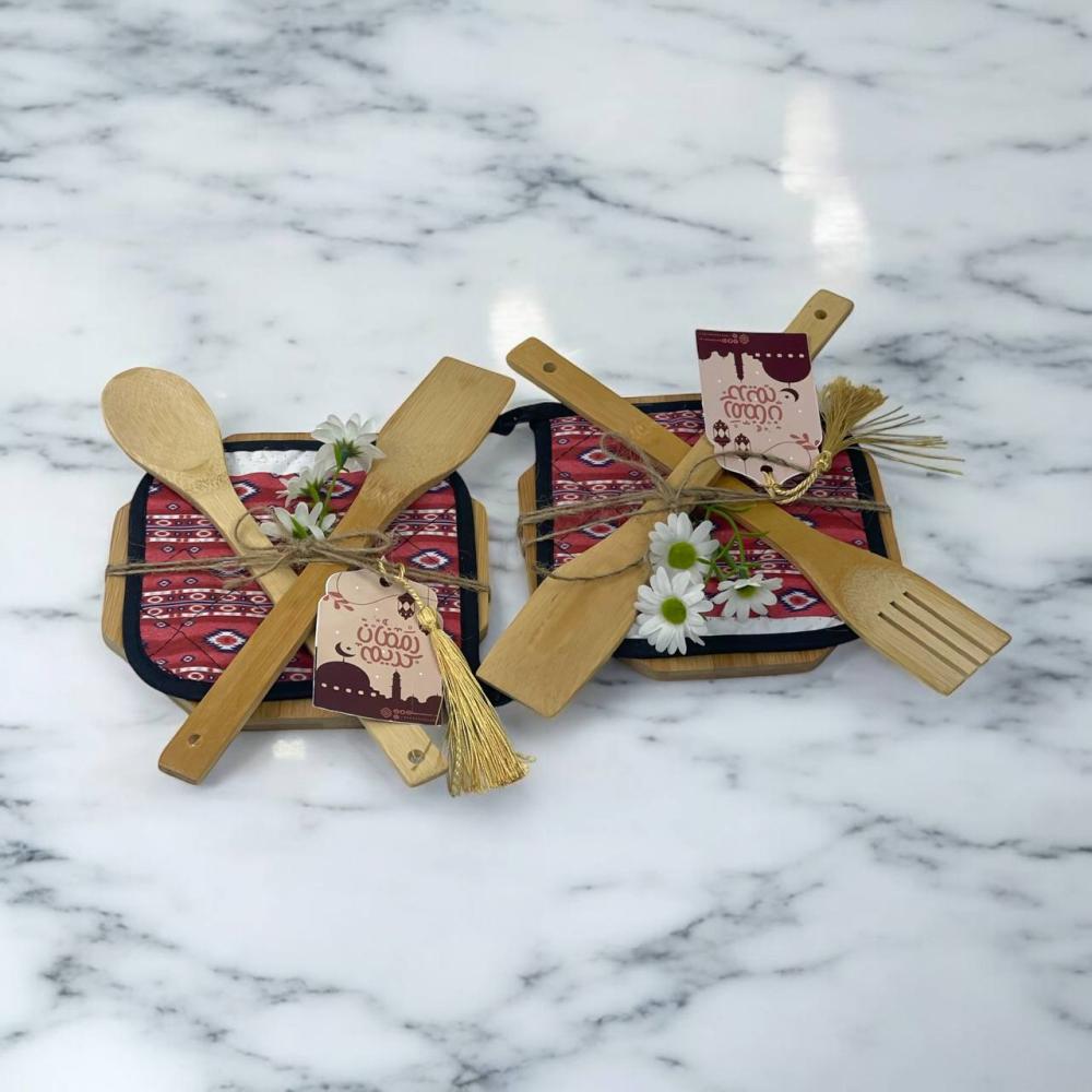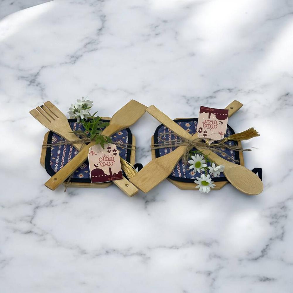 طقم أدوات مطبخ خشبية بلمسة رمضانيه 🌙